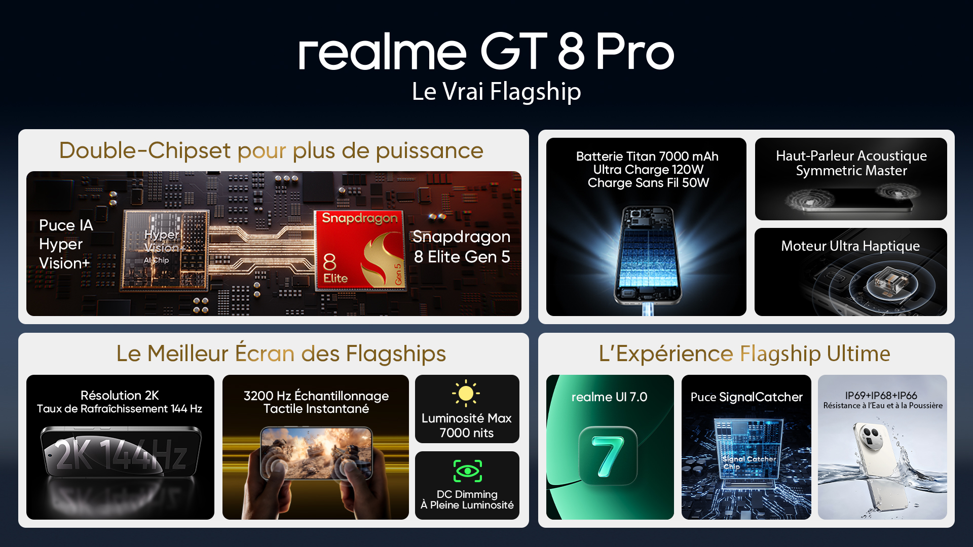 Surnommé « Le Vrai Flagship » par les observateurs du secteur, le GT 8 Pro marque une étape décisive pour realme. Ce terminal est l’un des tout premiers en Europe à exploiter la puissance de la plateforme Qualcomm Snapdragon 8 Elite Gen 5. Au-delà de ses performances brutes, il se distingue par une fiche technique impressionnante : un écran 2K cadencé à 144 Hz, un téléobjectif périscopique de 200 MP et une autonomie record portée par une batterie de 7000 mAh.